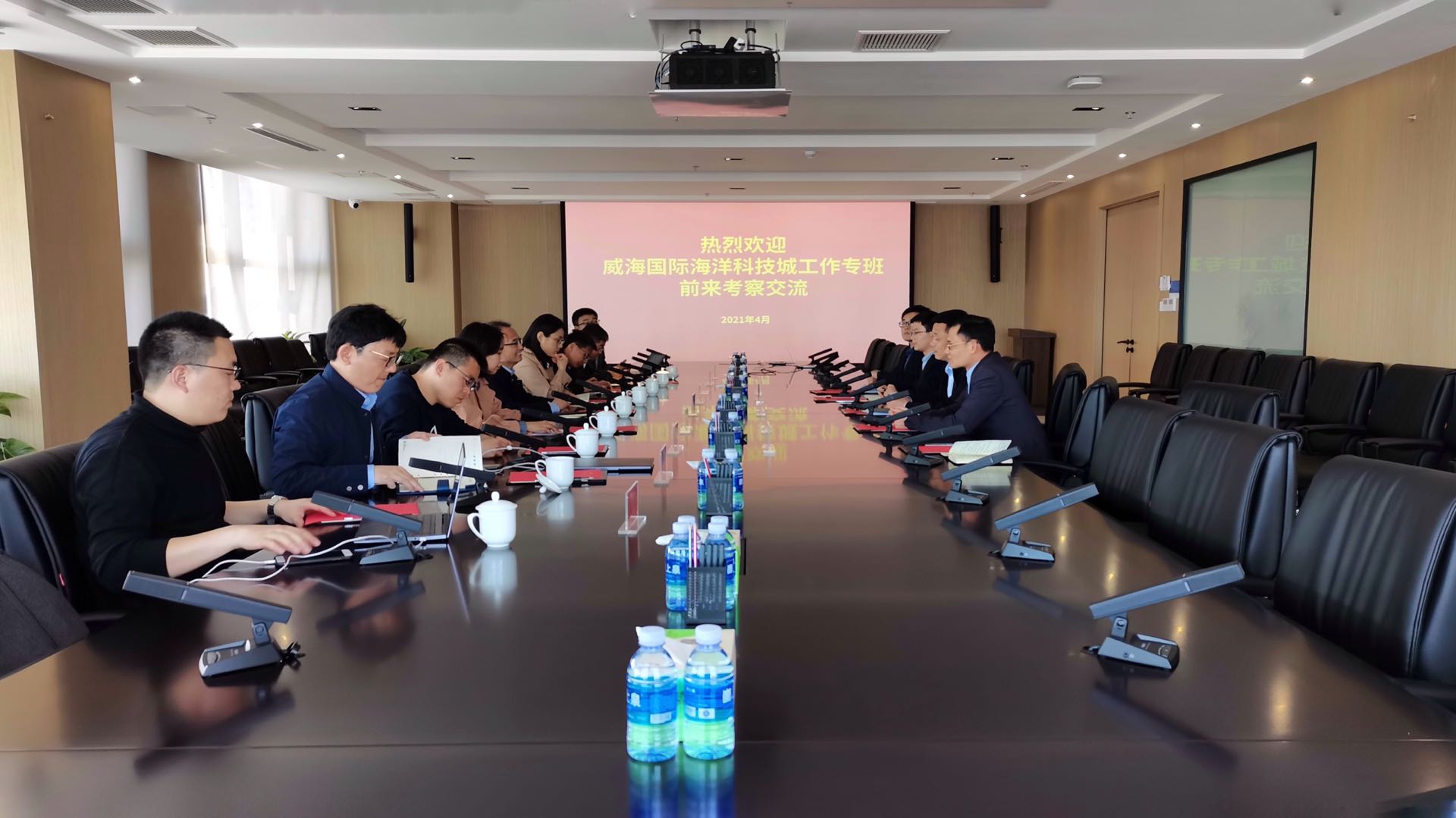 4月19日,威海國際海洋科技城建設(shè)推進(jìn)工作專班(以下簡稱“工作專班”)一行到訪海控集團(tuán)調(diào)研學(xué)習(xí),海控集團(tuán)黨委副書記王文景,投融資運(yùn)營部、戰(zhàn)略發(fā)展部等部門負(fù)責(zé)人陪同交流。